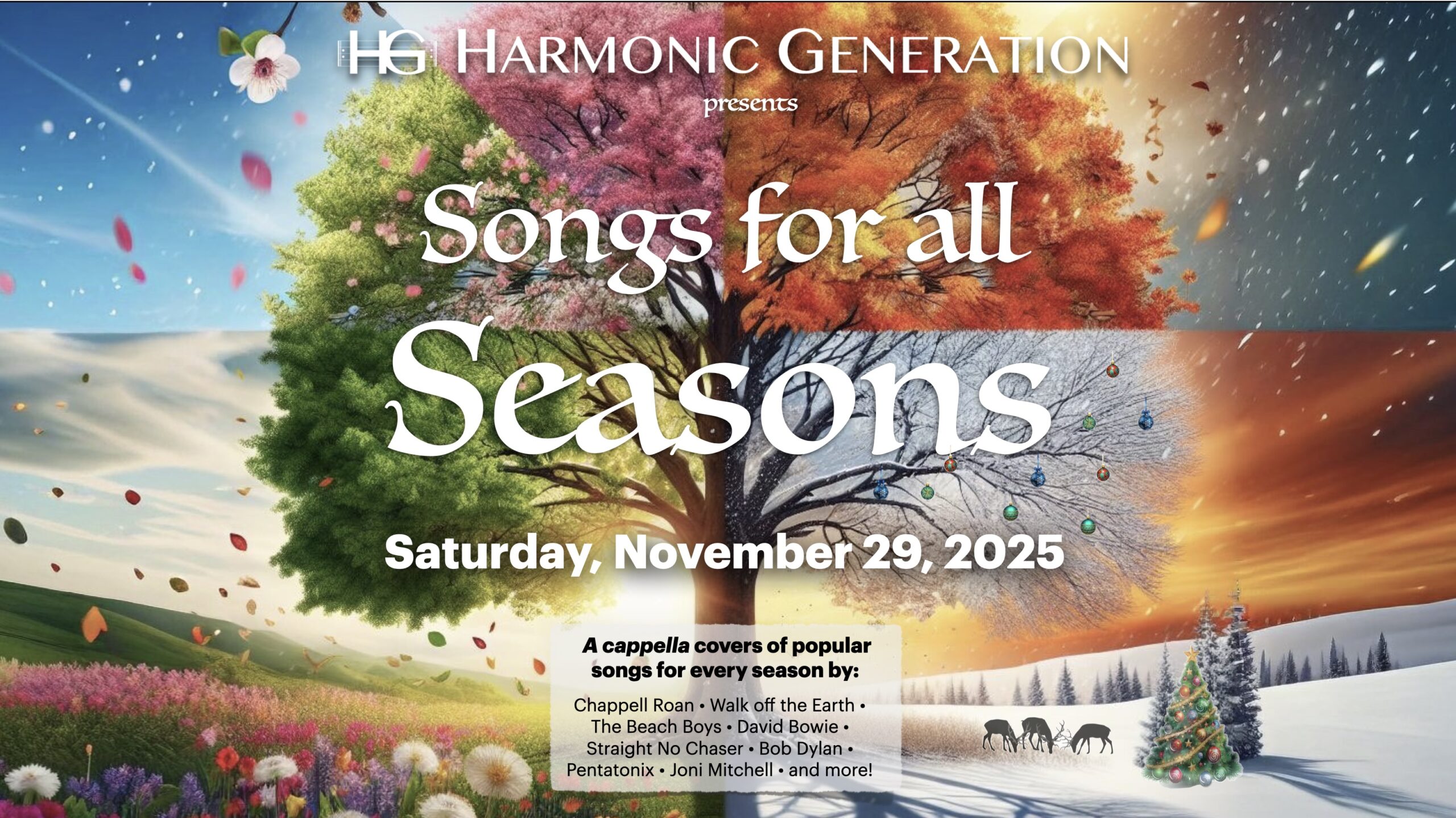 Ottawa’s Harmonic Generation invites you to “Songs for all Seasons”, an evening of a cappella classics and holiday favourites to celebrate every season of the year.